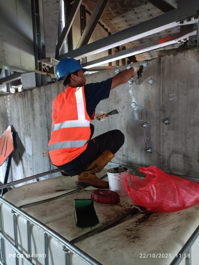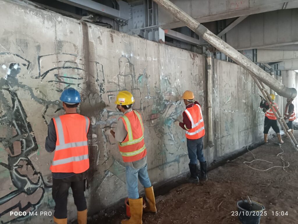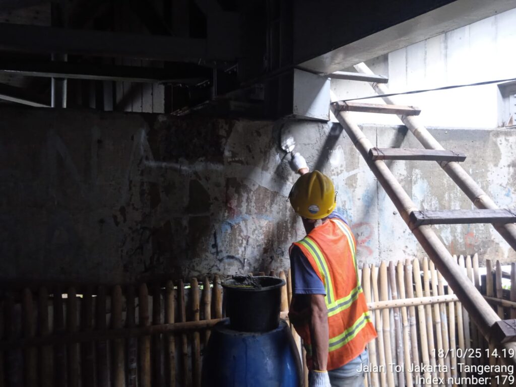 - Perbaikan retak, beton keropos, dan korosi tulangan