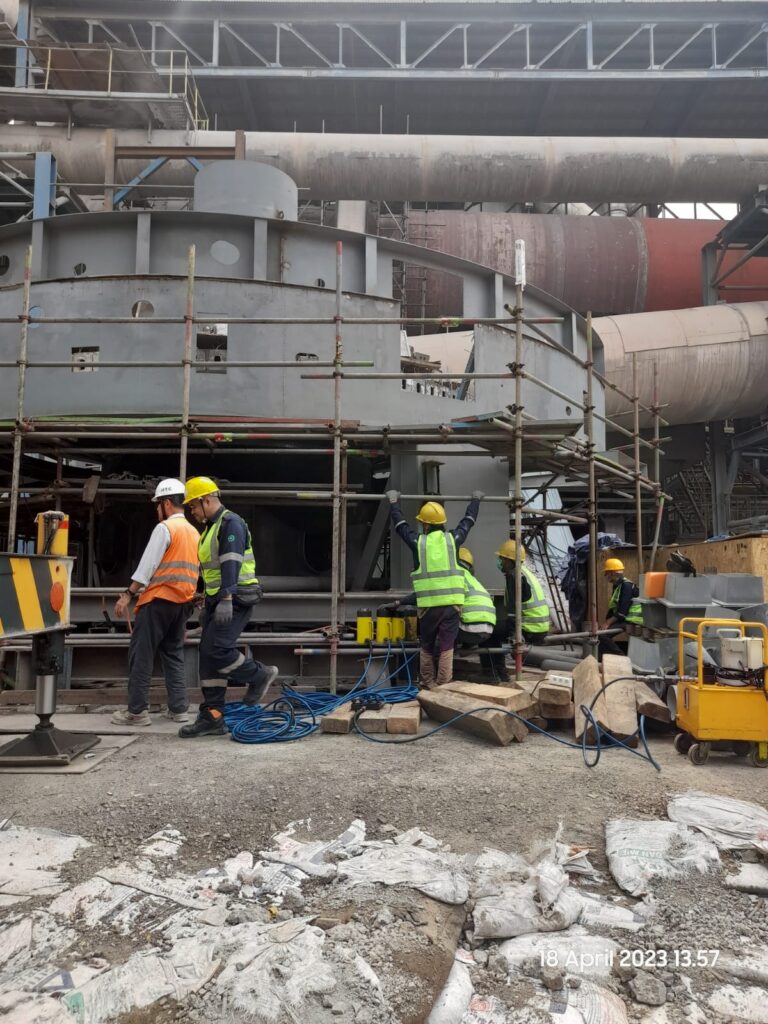 Dengan menggunakan hydraulic jack system, skidding track, dan kontrol beban yang terukur, pekerjaan dapat dilakukan dengan tingkat akurasi tinggi serta meminimalkan downtime operasional pabrik.