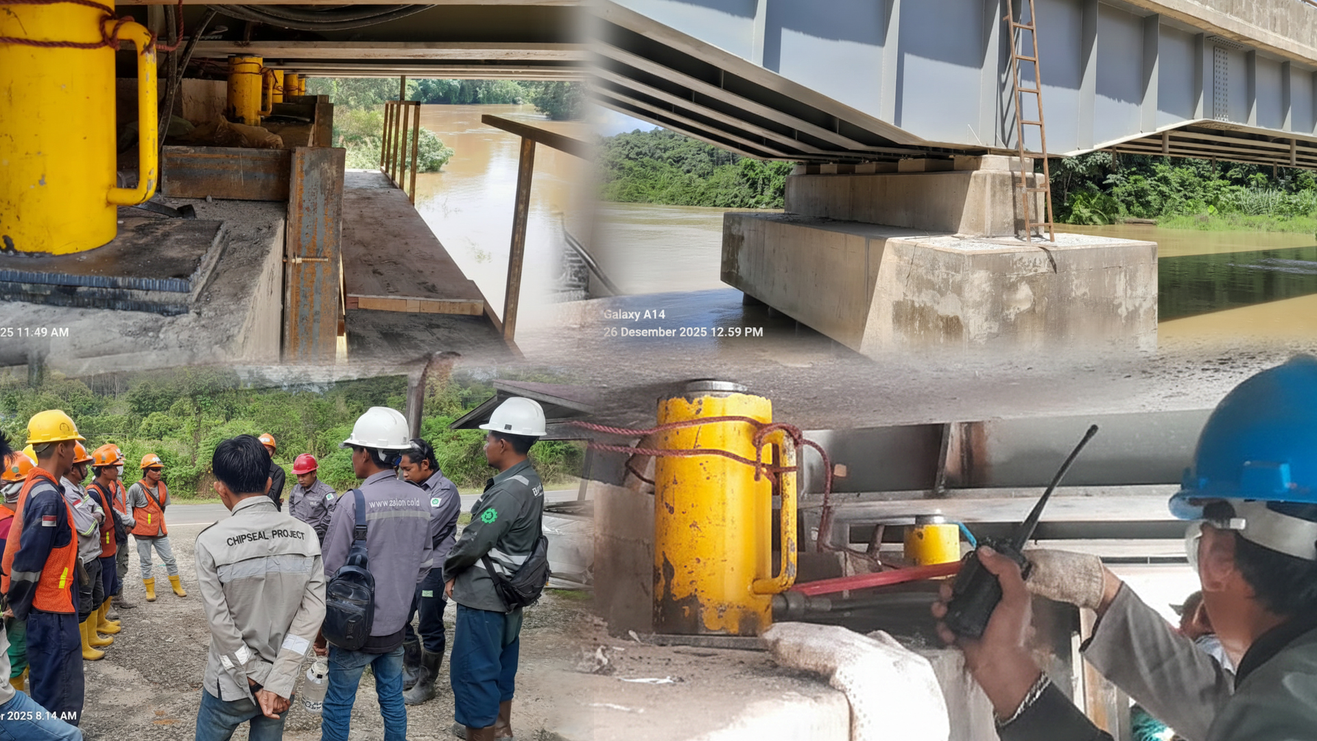 Pangkal Pinang, Pulau Bangka Belitung , Pengerjaan Jack Up Sungai Selindung Bridge Pangkal Pinang atau biasa disebut Dongkrak Jembatan mengangkat jembatan untuk mengganti suspensi atau elastomer di 16 titik dengan menggunakan Hydraulic Jack 100 ton type Locknut sebanyak 12 unit tinggi jack hidrolik tidak lebih dari 20 cm dan pengangkatan tidak lebih dari 5 cm untuk kesimbangan dan di gerakkan oleh pompa hidrolik.